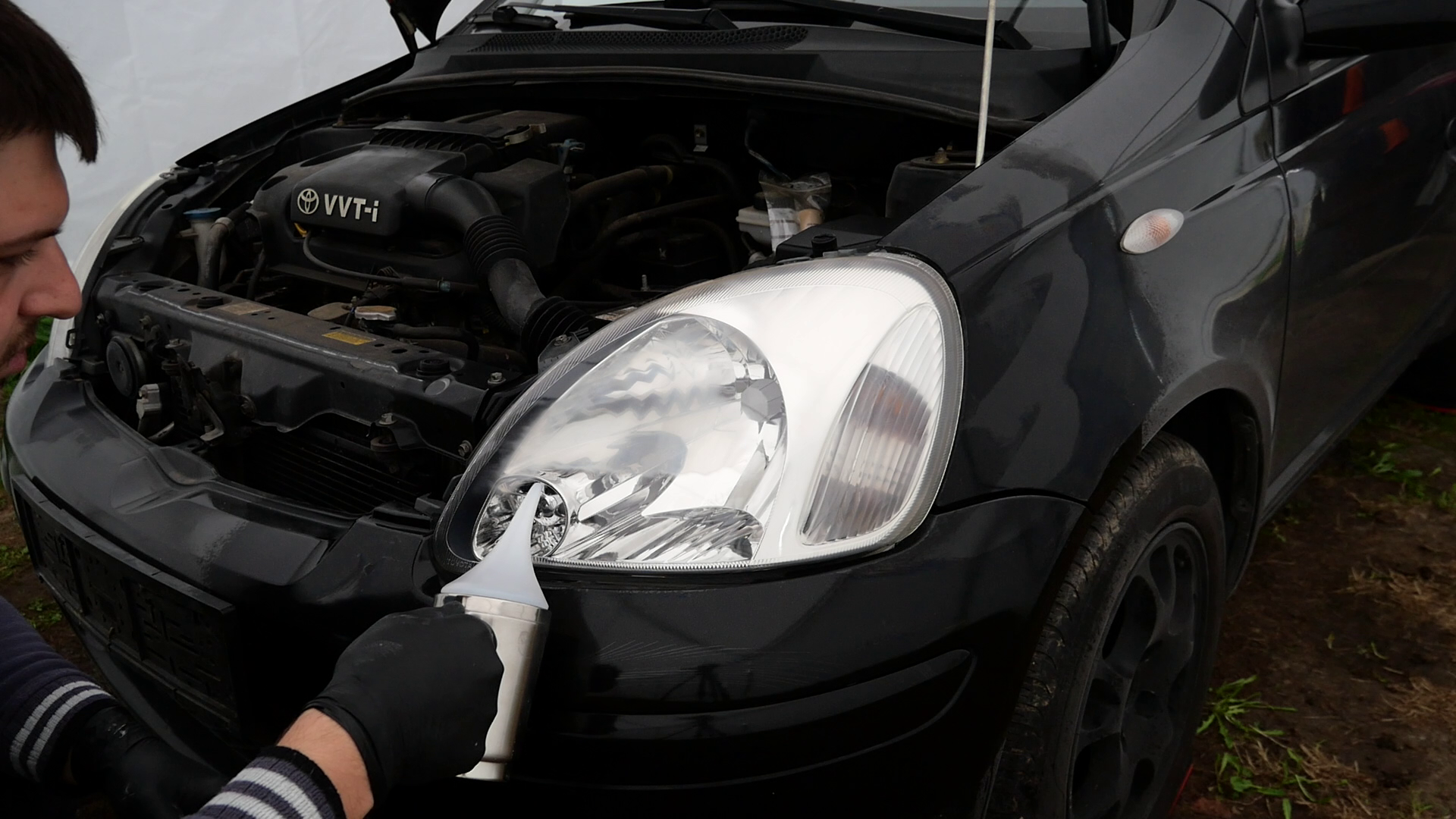 Nakon što je skinuti stari sloj, prelazimo preko farova sa tekućinom koja se u lončeku zagrije i time se stvori novi sloj i vrati opet prozirnost na farove.